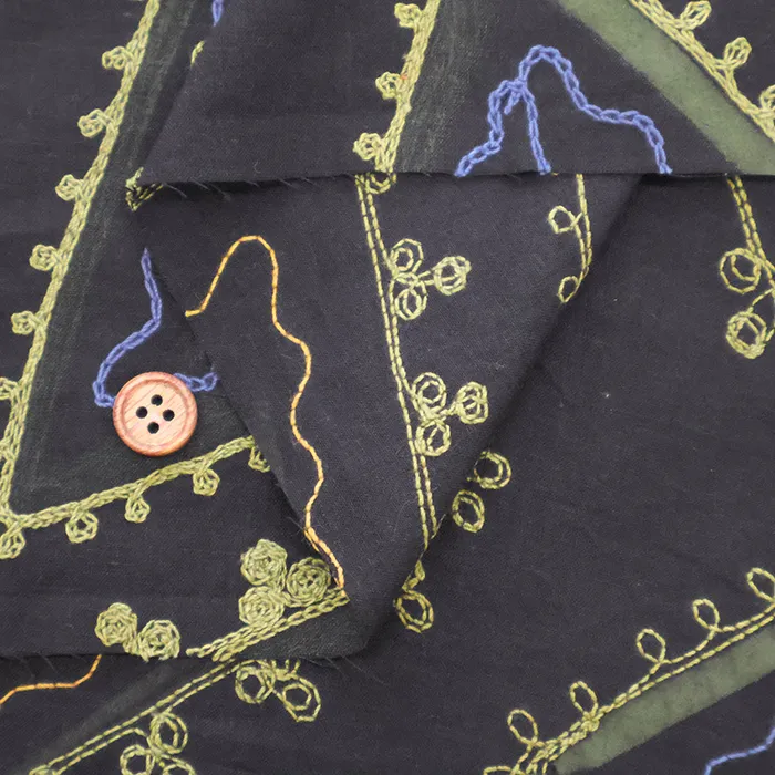 ローン程度の厚みの生地に華やかで目を引く刺繍が施されています。