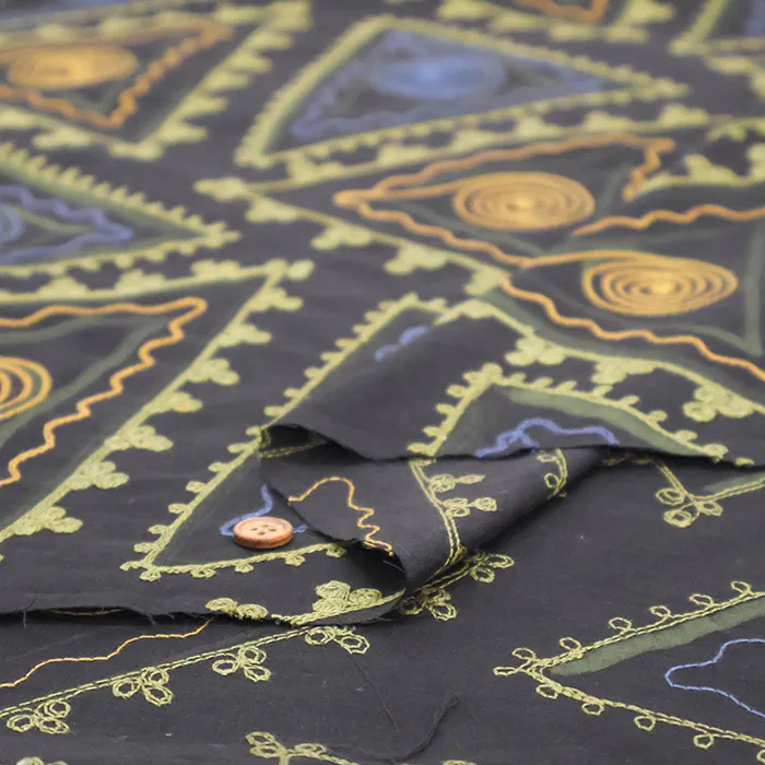 伝統的なインドの手仕事(手刺繍)を施した「MANGLAM刺繍(マングラム刺繍)」生地です。