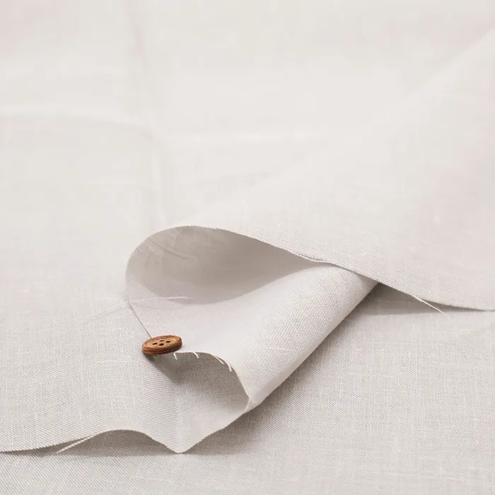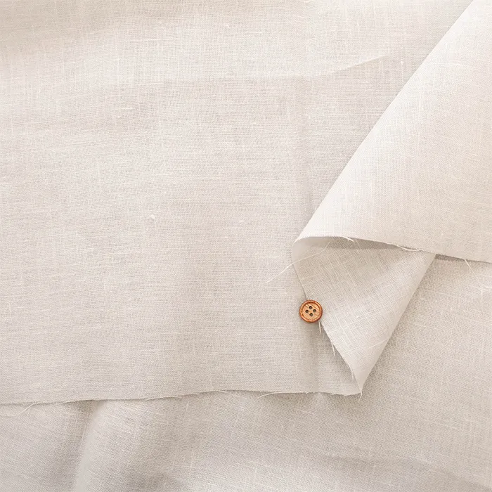 シーチング程度の厚みで、程よいハリとシャリ感があるリネン生地です。