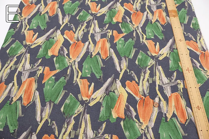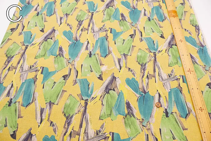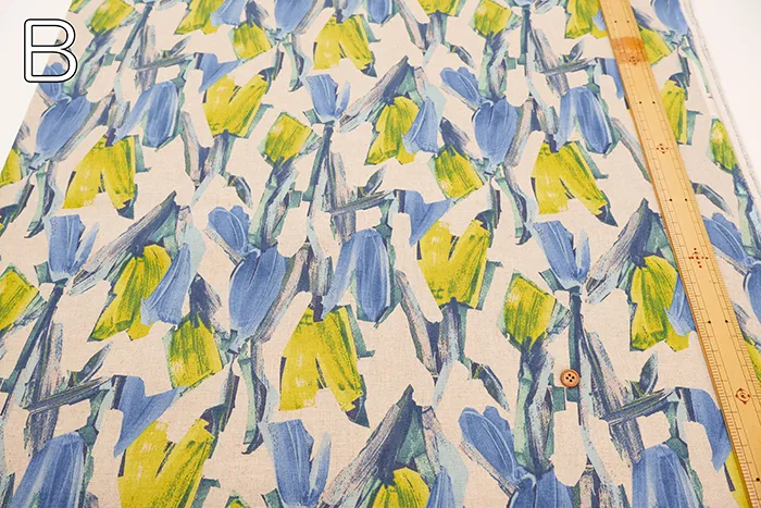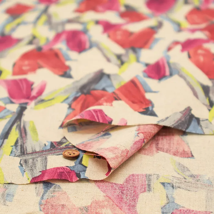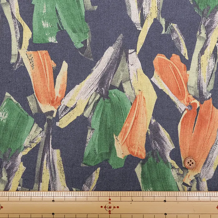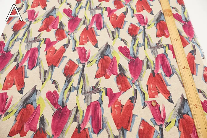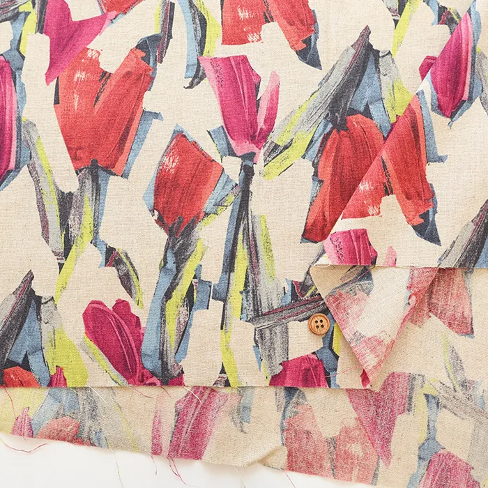 ハーフリネンシーチングプリント生地 モチーフフラワー