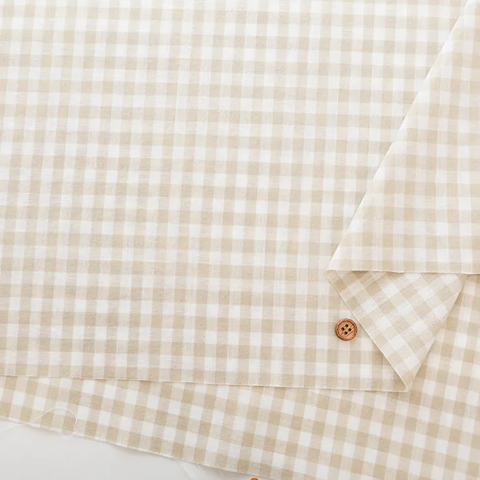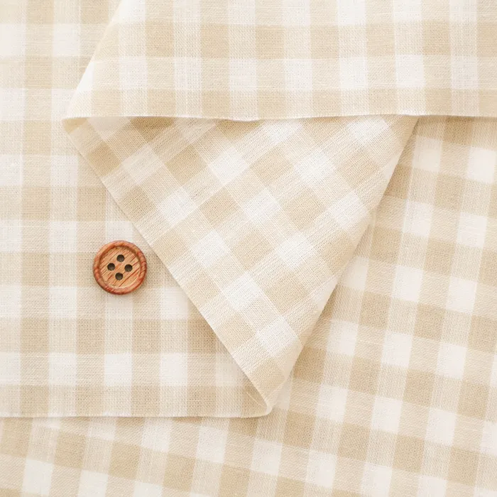 コットンとリネンとラミーの混紡生地です。コットンの割合が多く、肌触りの良い柔らかい素材です。