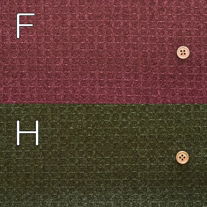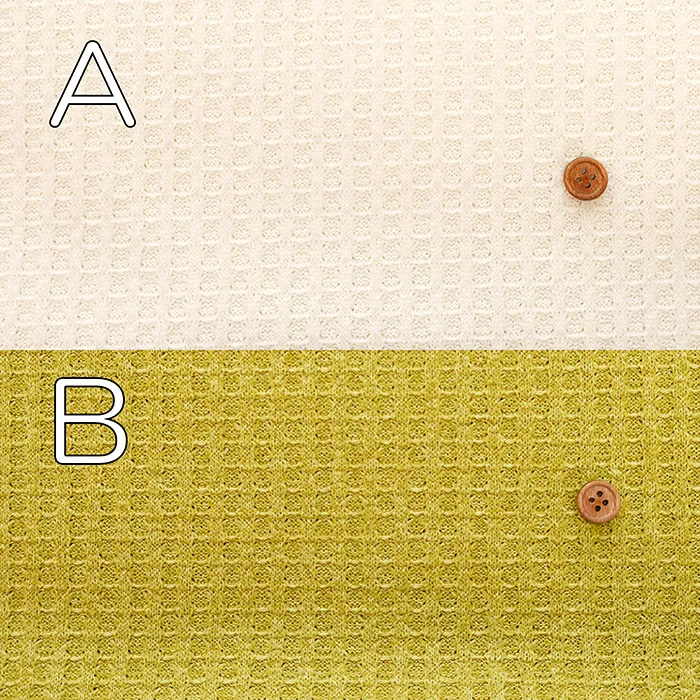 程よい厚みとストレッチで扱いやすい、ニット素材のワッフル生地です。