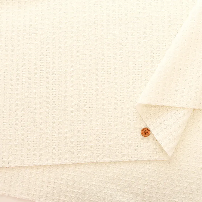 生地表面に蜂の巣状の凹凸を織り出した蜂巣織りの一種であるワッフル生地。