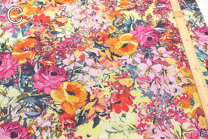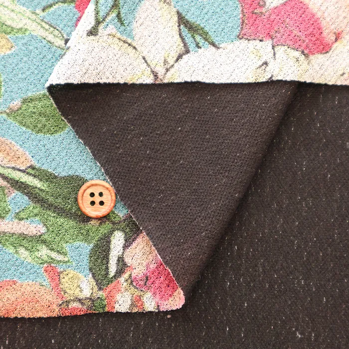 ポリエステルクレープニットプリント生地 エレガントフラワー