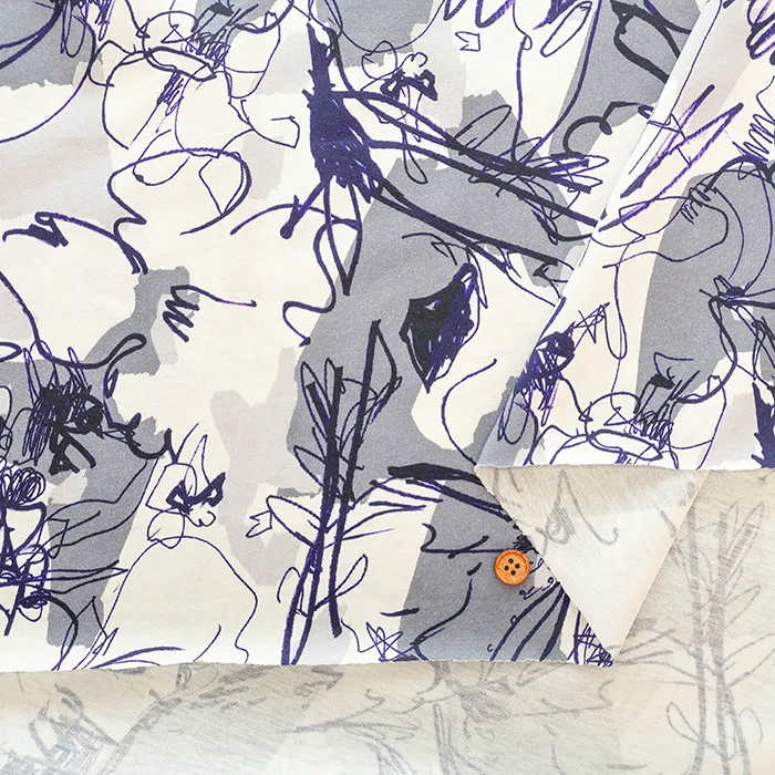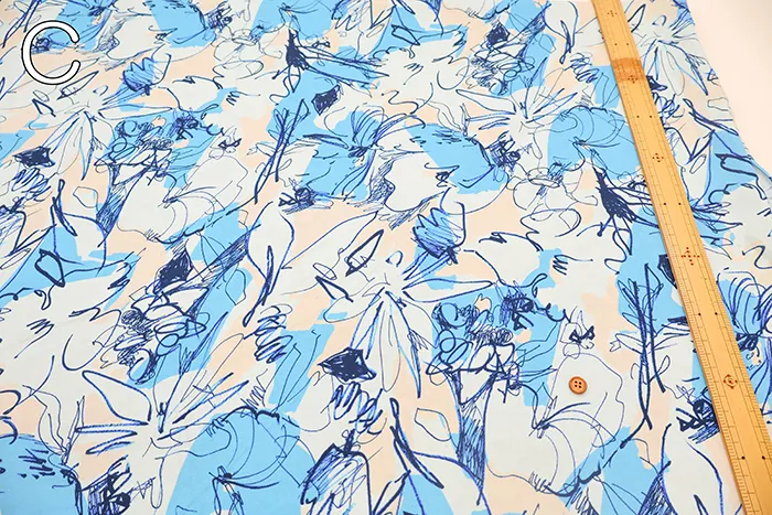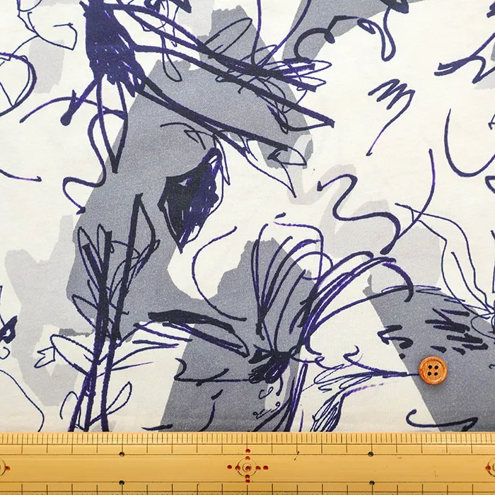 シルケット加工 コットン天竺ニットプリント生地 ラインフラワー