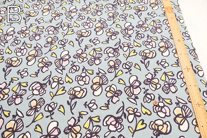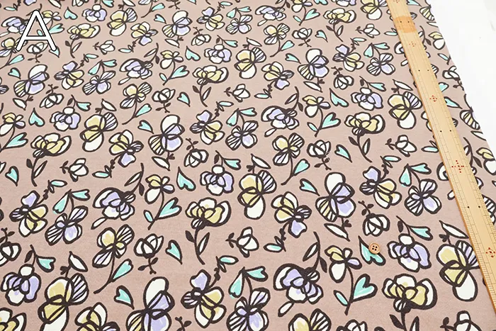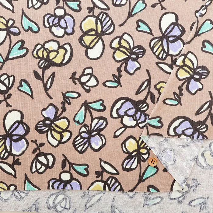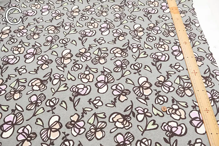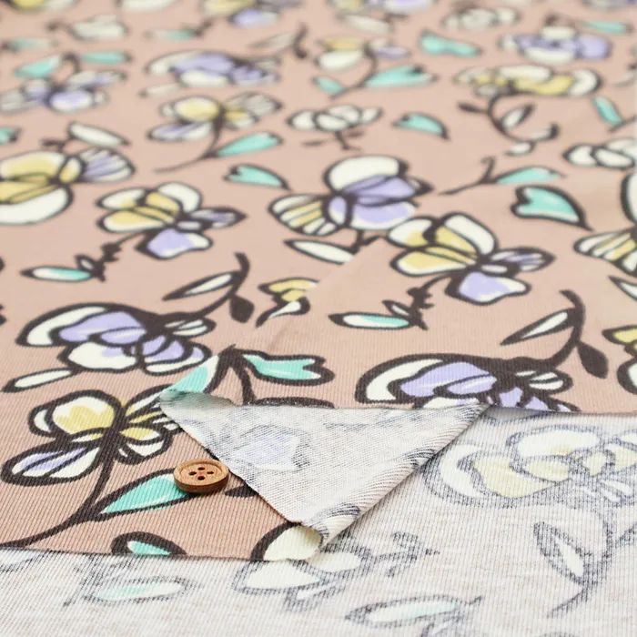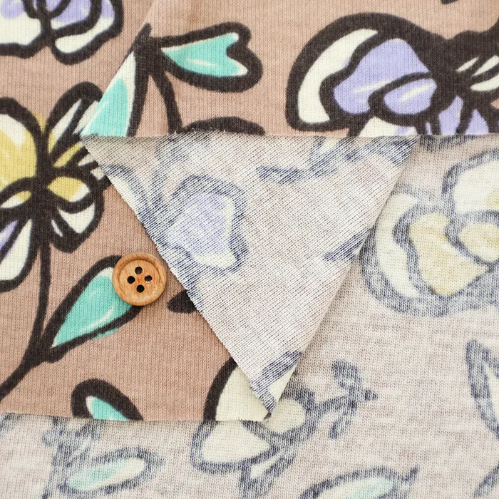 シルケットUV加工 コットン強撚フライスニットプリント生地 フラワー