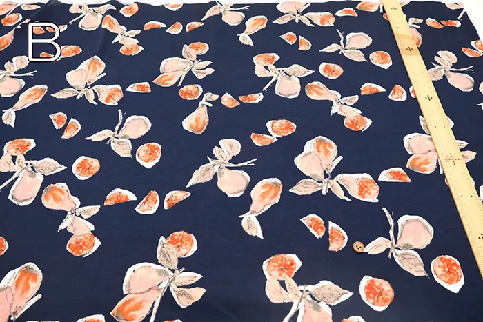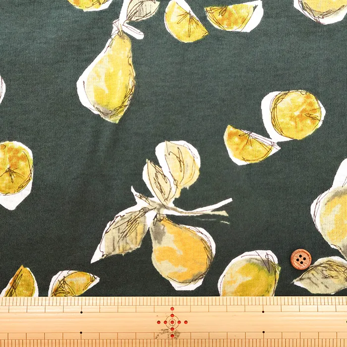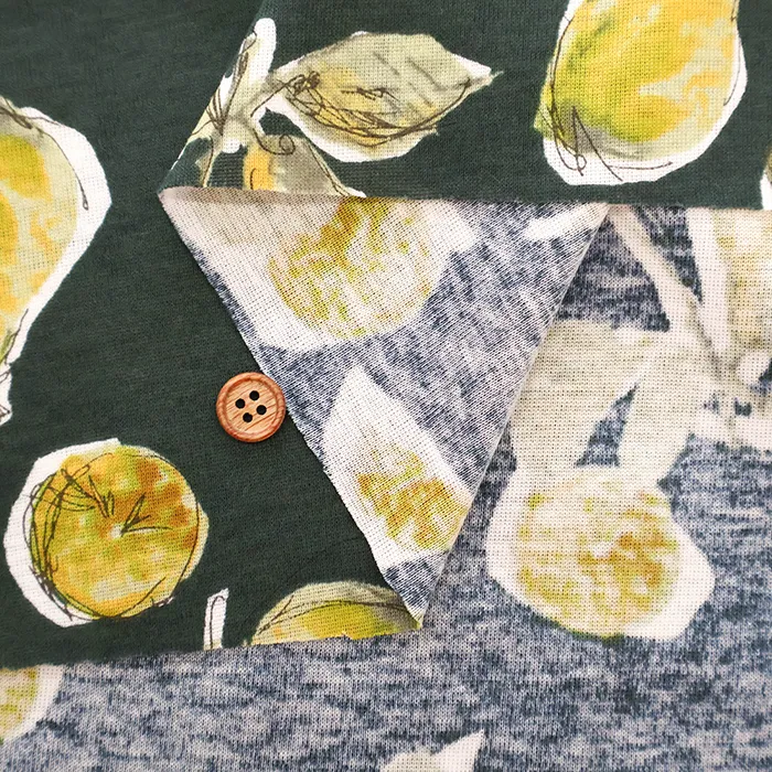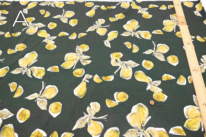 UV加工・シルケット加工 コットン80/2コーマフライスニットプリント生地 果物