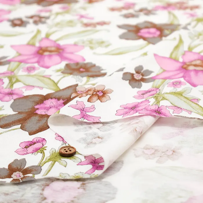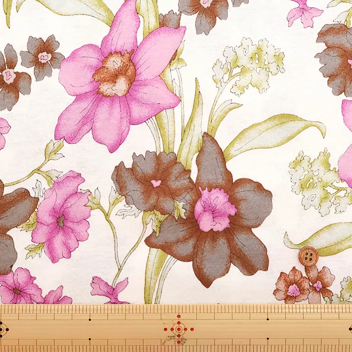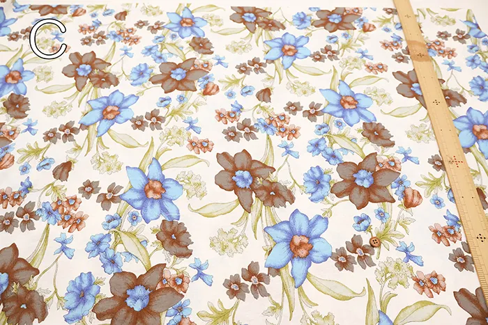 UV加工・シルケット加工 コットン80/2コーマフライスニットプリント生地 ボタニカル