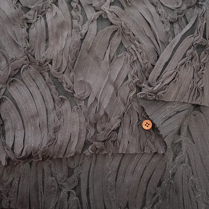 布地を細くカットし縫い付け、模様を表現したカットワークレース生地です。