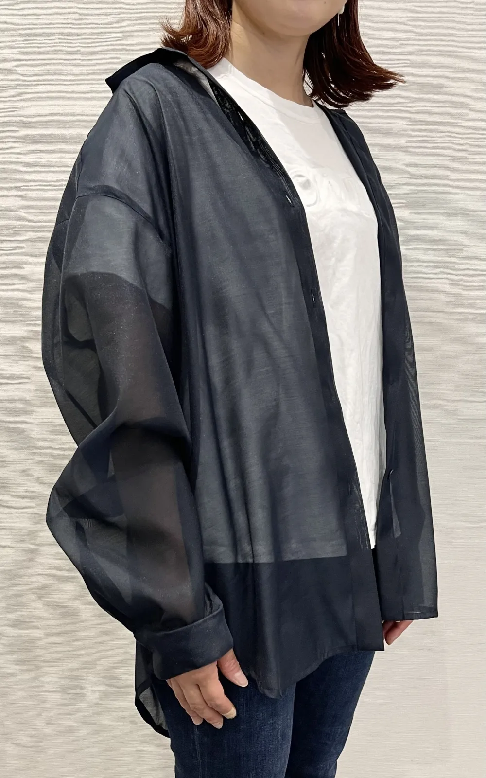 通常のオーガンジーよりも光沢が抑え目なので、シアー感のあるお洋服にいかがでしょうか。