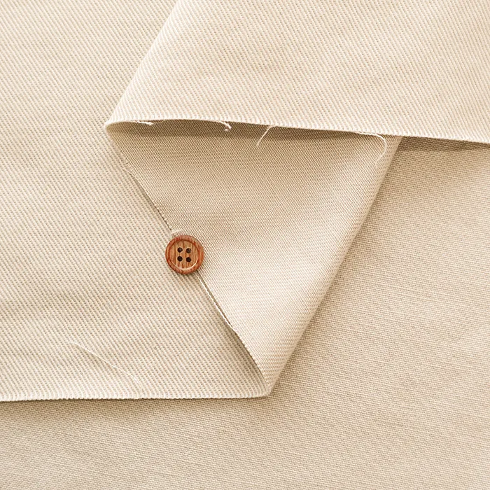 綿のふんわりとした柔らかな風合いと、リネンの持つドライなタッチが合わさった素材です。