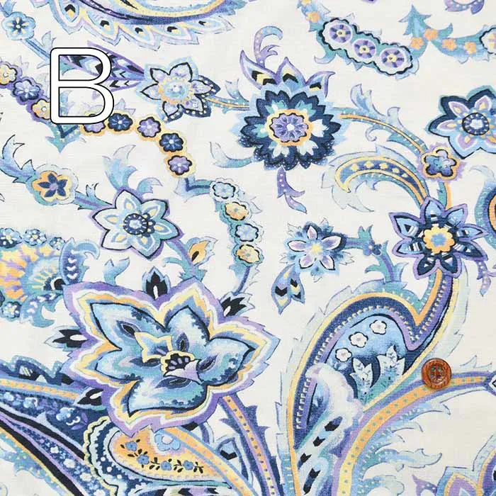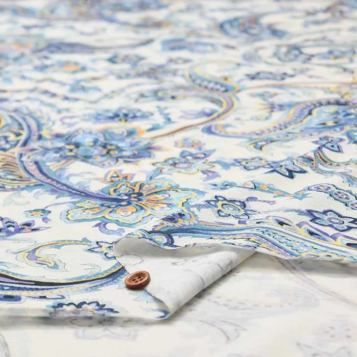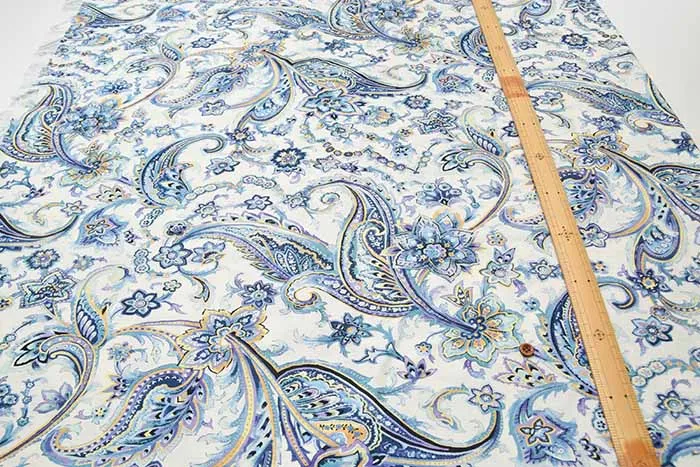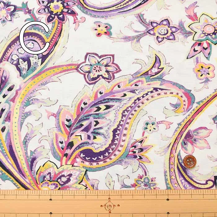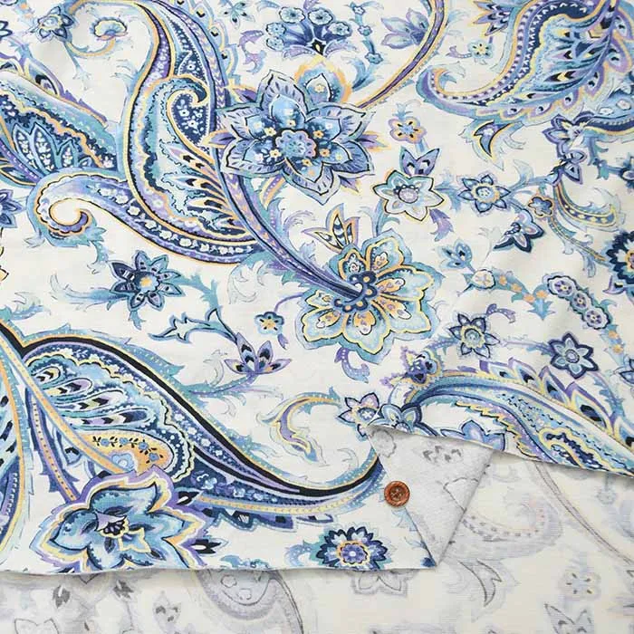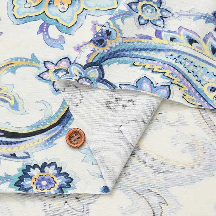 60/2強撚SZ天竺ニットプリント生地 グレゼールペイズリー