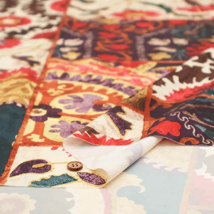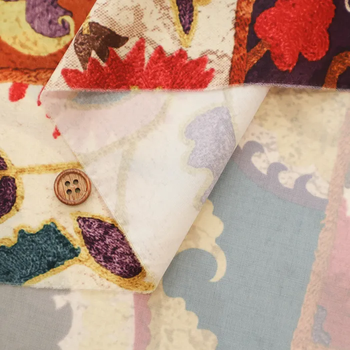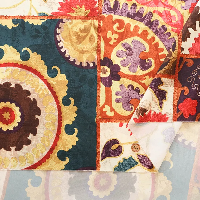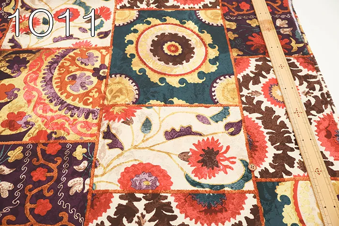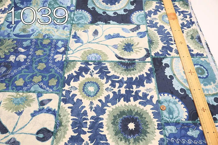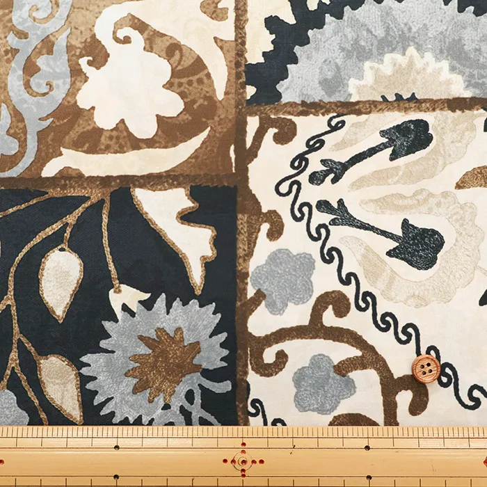 ポリエステルデシン転写プリント生地 タイルフラワー