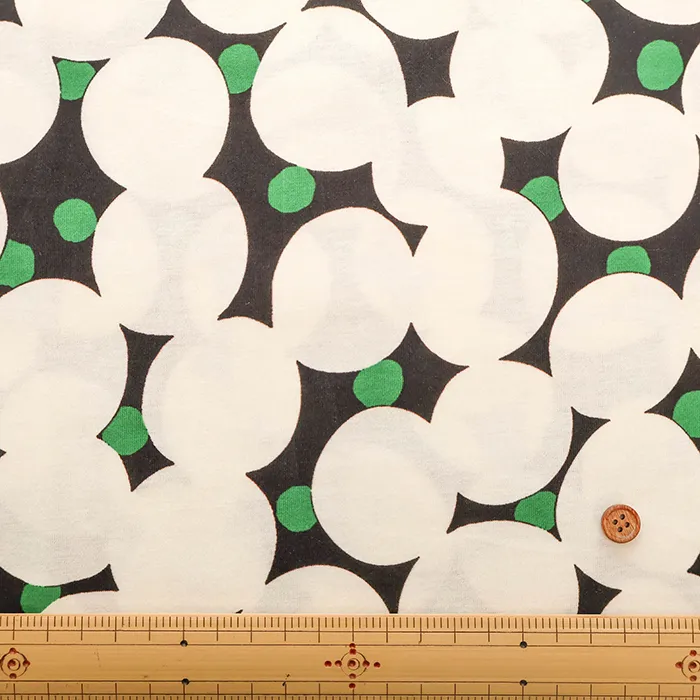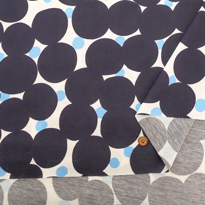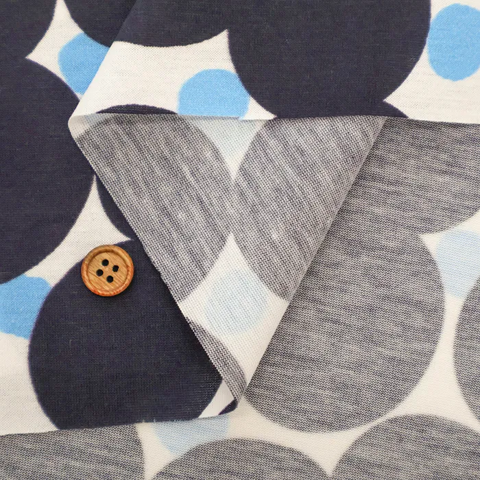 Wシルケット加工 コットン天竺ニットプリント生地 水玉