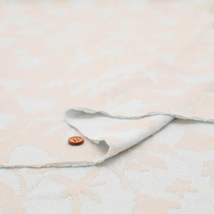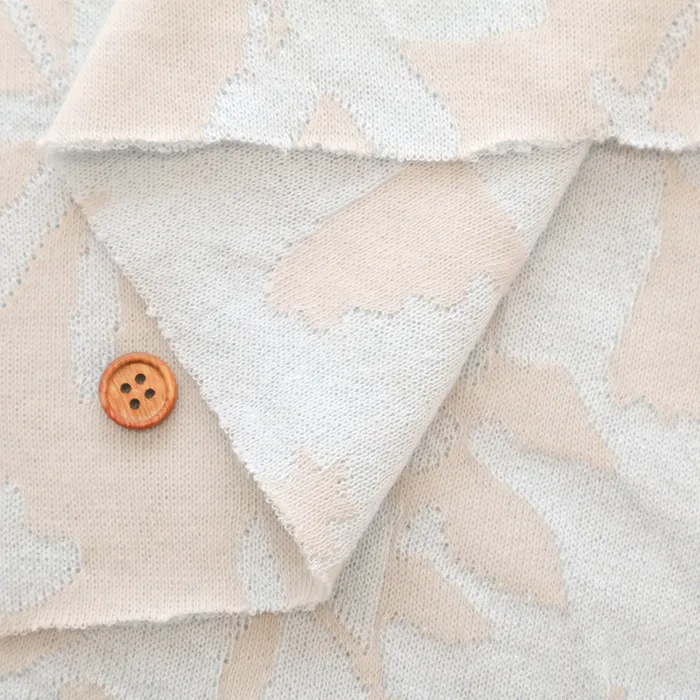 この手法により、編地の表裏に緻密な柄や複雑な組織を表現でき、ふっくらとした厚みと柔らかな肌触りが特徴の生地です。