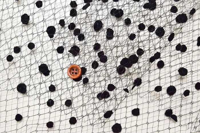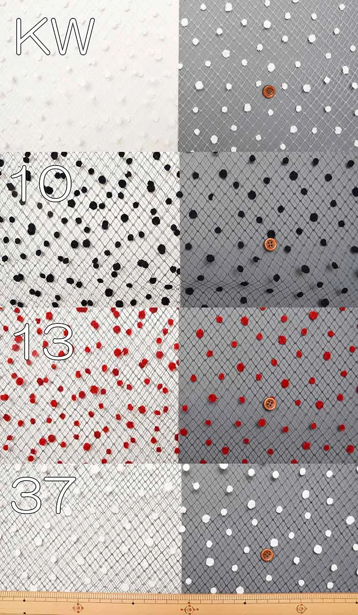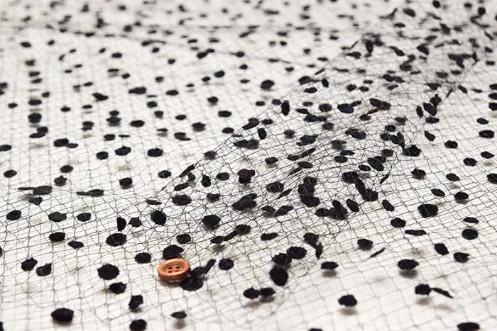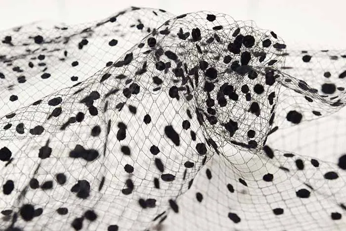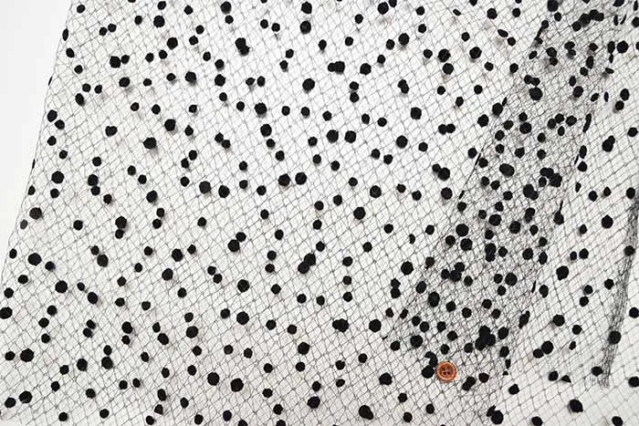 ネット生地に使いやすいシンプルな水玉のフロッキーの加工がされています。