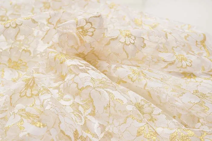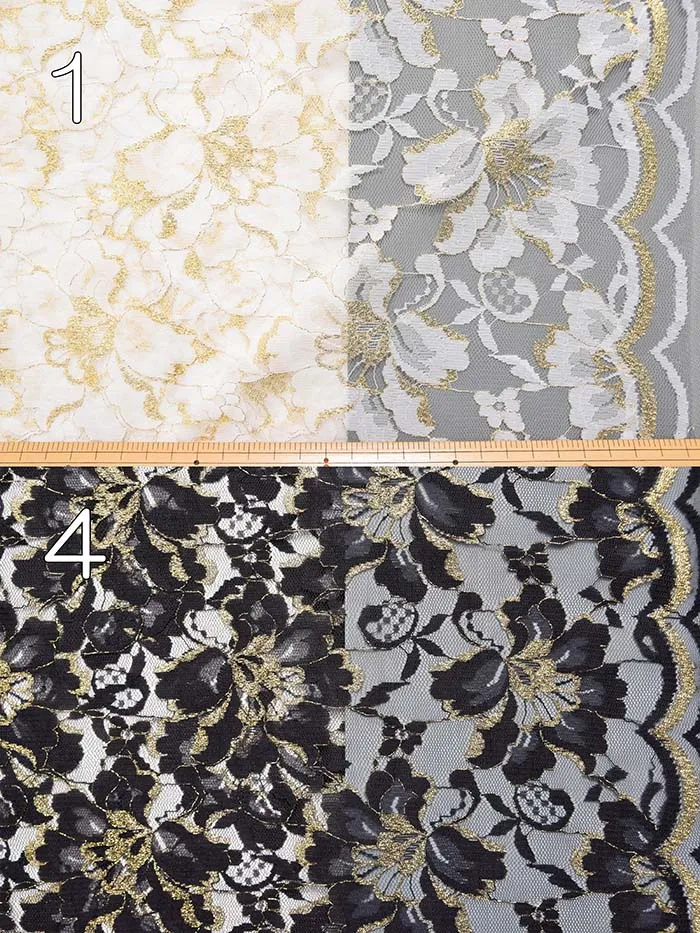ラッセルレース編機で編みながら柄を作っていくレース生地です。