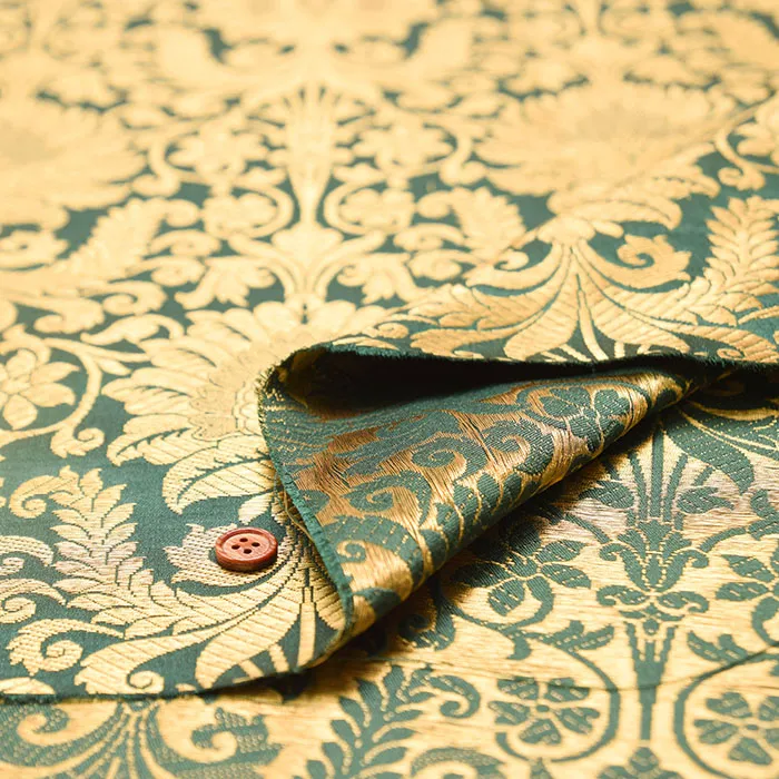 インド製 ラメジャガード生地 ボタニカル