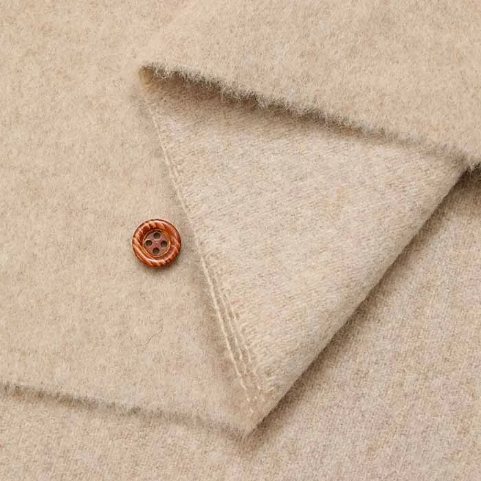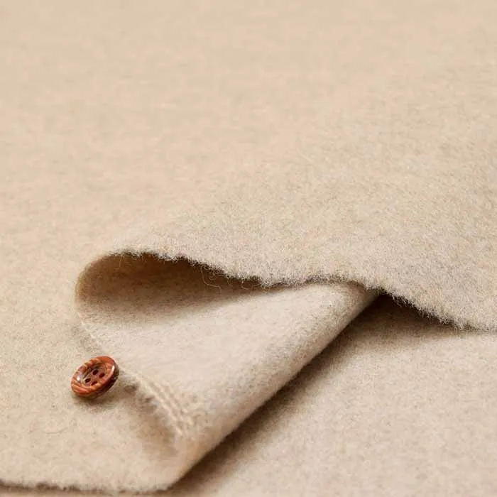 起毛させたのちに毛を刈り込んで仕上げた素材です。 メルトンよりも軽くてふっくらとした生地感となります。