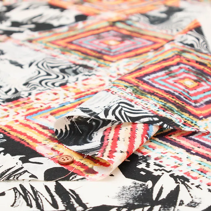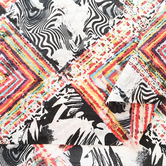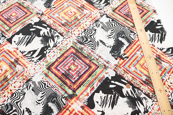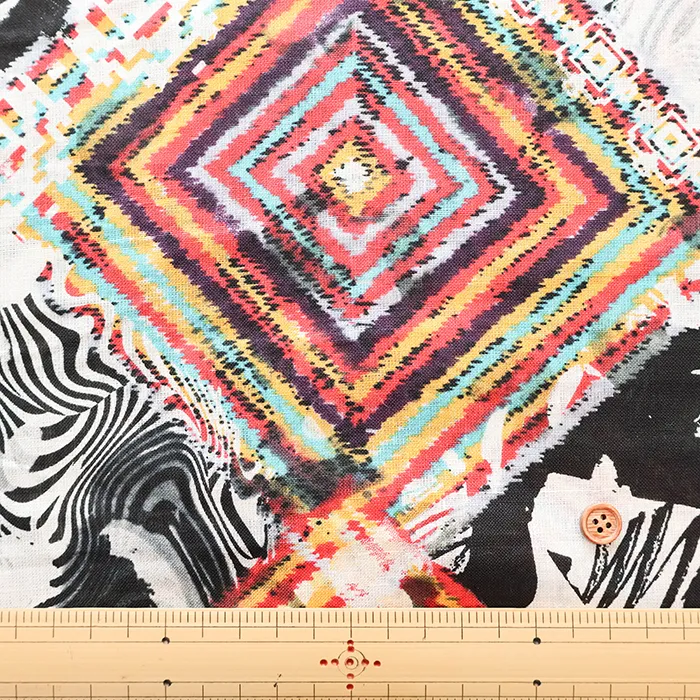 中国製 リネンプリント生地 モザイク