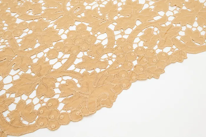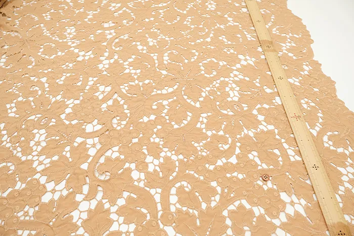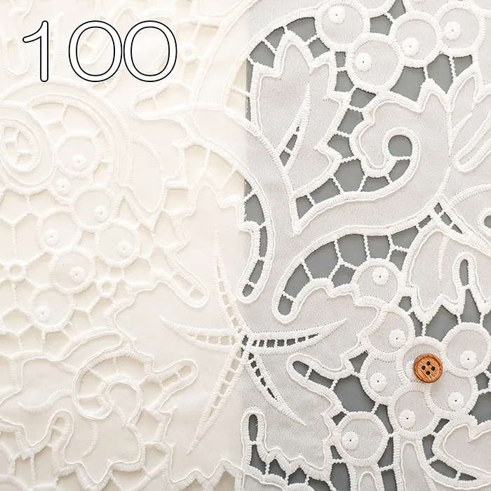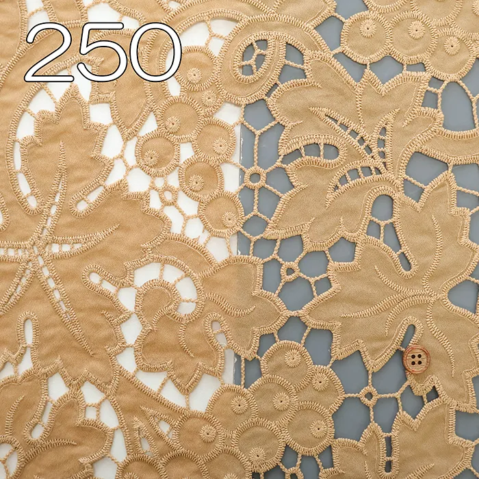 コードレースとは、布地やチュールレースなどの上に細い糸で刺繍したレースの事で、 レースの上からさらに模様を縫い重ねることで立体感のある風合いを出すことができます。