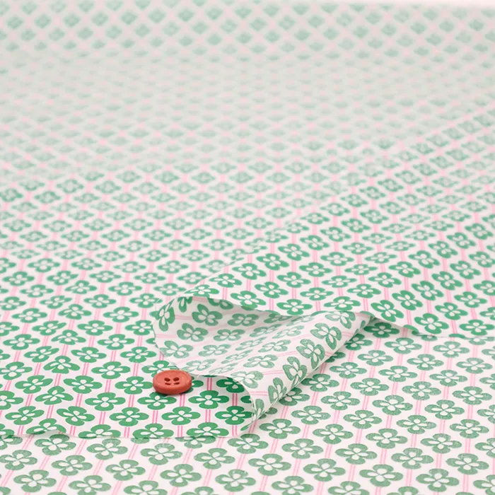 著名な摂政時代のダンディ、ボウ・ブラムルを讃えてデザインされた「クローバー・フィールズ」は、摂政時代のサテン・ダマスク模様を彷彿とさせる精緻な幾何学的な花柄です。