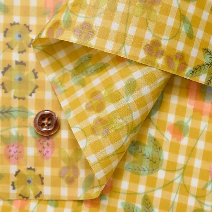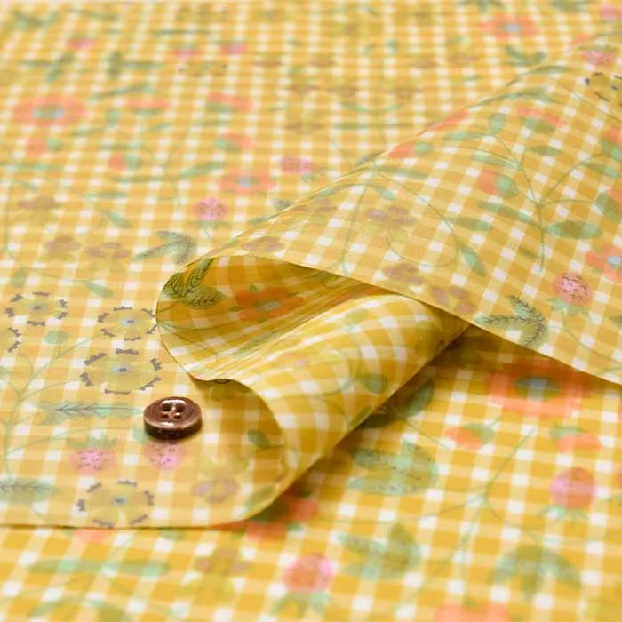 過去にマドラスチェックの展開はございましたが、今回はタナローンと同規格のギンガムチェックにプリントを組み合わせた、リバティプリントの新しい表現となっております。