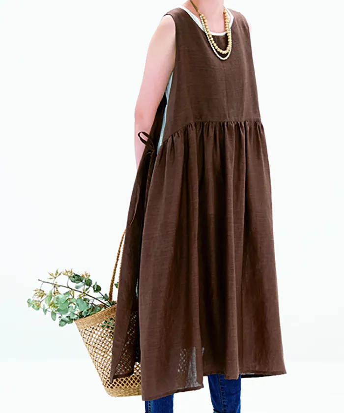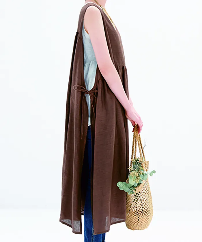 両サイドにつけたひもの結び方で3種類の着こなしができるワンピース