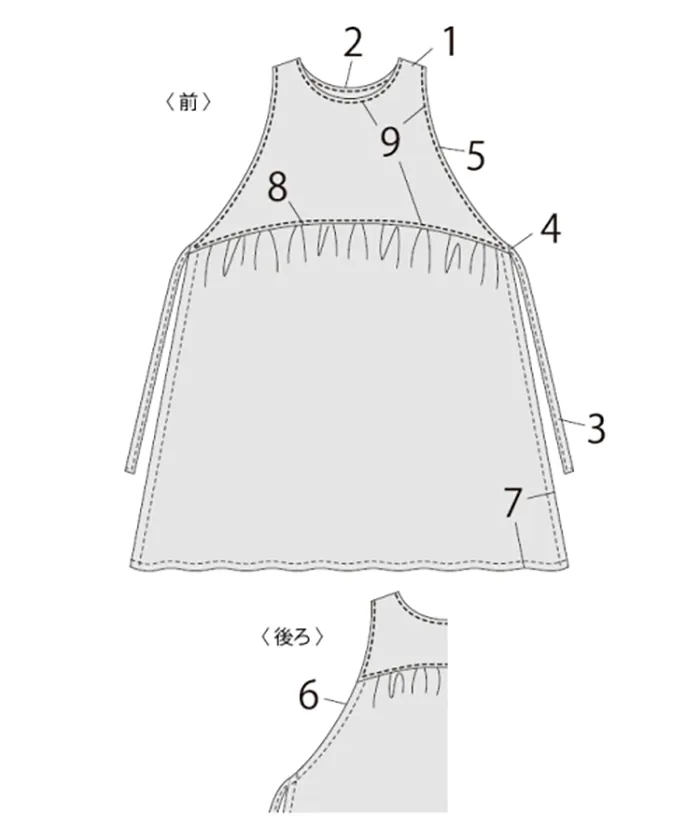 ソーイング初心者にやさしい、縫製説明レシピ付き。