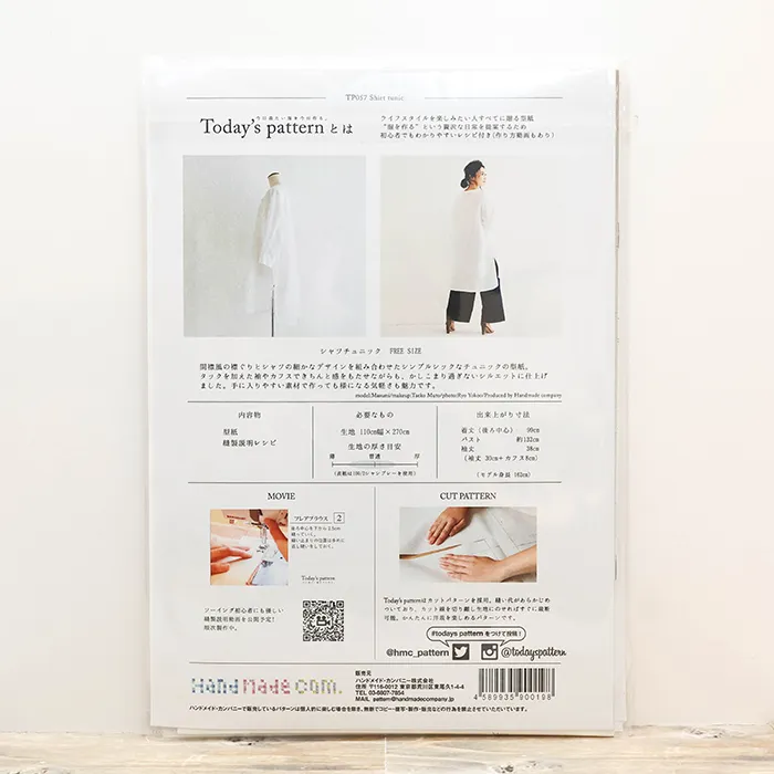 開襟風の襟ぐりとシャツの細かなデザインを組み合わせたシンプルシックなチュニックの型紙。