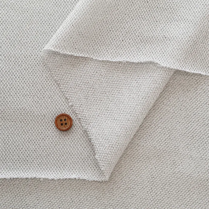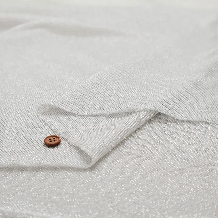 ヨコ方向に伸びる薄手ニット地に、キラキラのラメをたっぷり織り込んだニット。