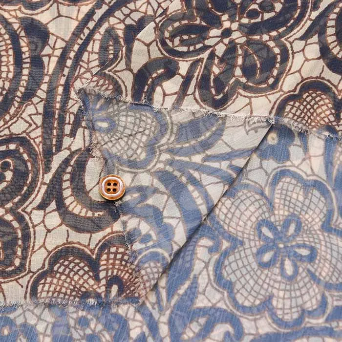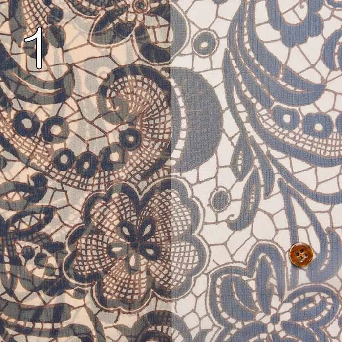 シフォンは、ジョーゼットのように生地表面にとても細かなシボが現われており自然なシワ感が特徴で、それによりふっくらとしたふくらみのある風合いがナチュラル感を引き出しています。