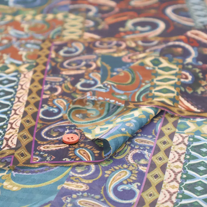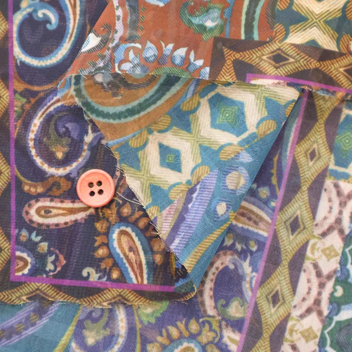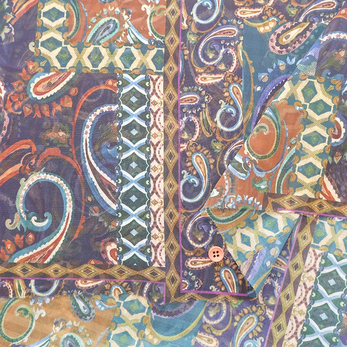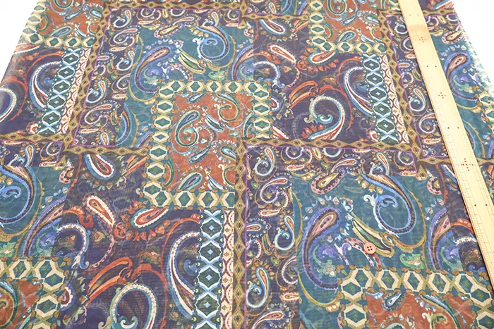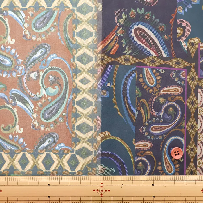 ポリエステルシフォンシャドーチェックプリント生地 ペイズリーパッチ