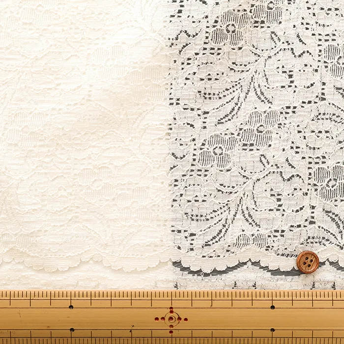 ラッセルレース編機で編みながら柄を作っていくレース生地です。