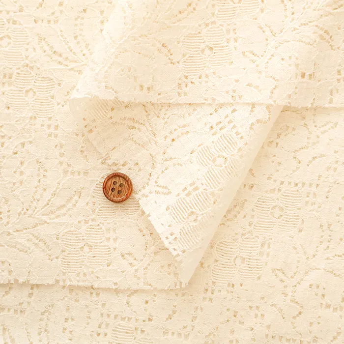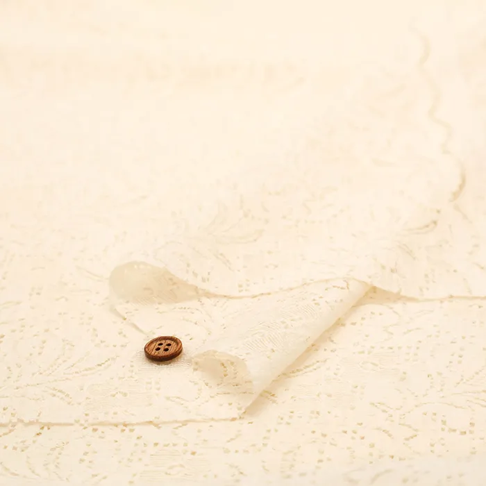 刺繍のレースとは違い、編みながら柄を作っているので比較的仕上がりが平坦で立体感は少ないです。