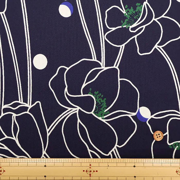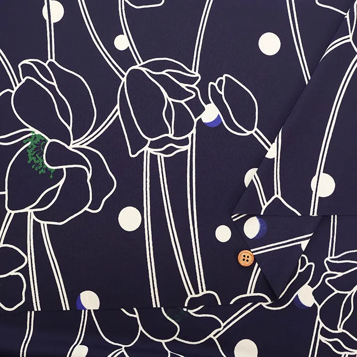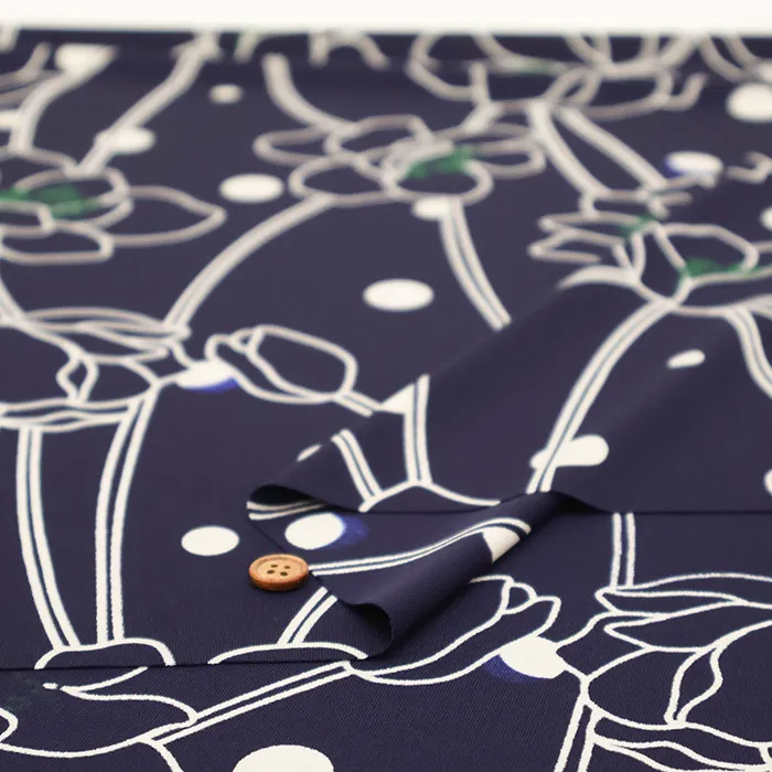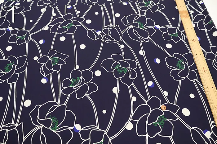 ポリエステルスムースニットプリント生地 ラインフラワー