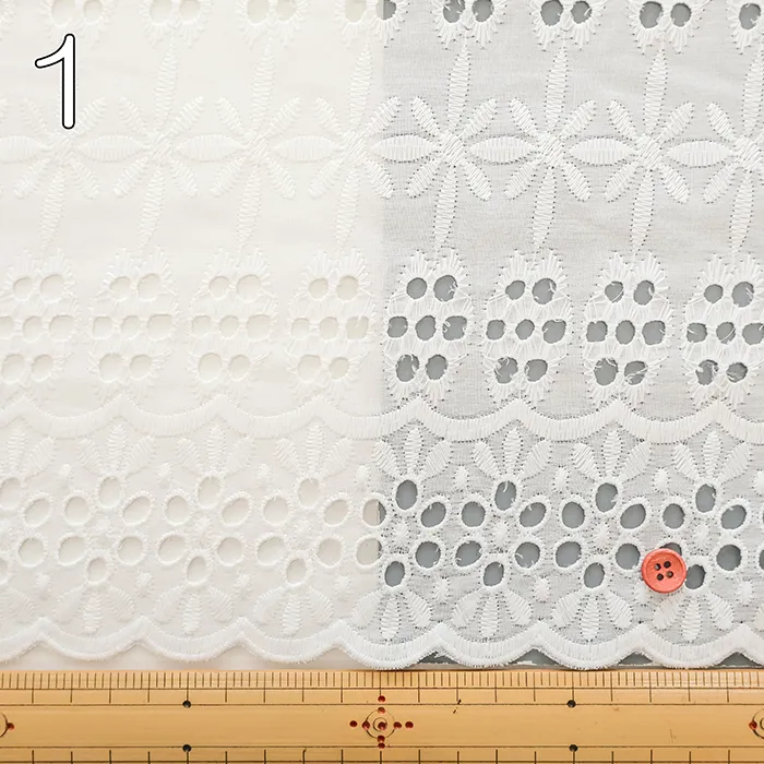 タイ製 ポリエステル両耳スカラップレース生地 フラワー