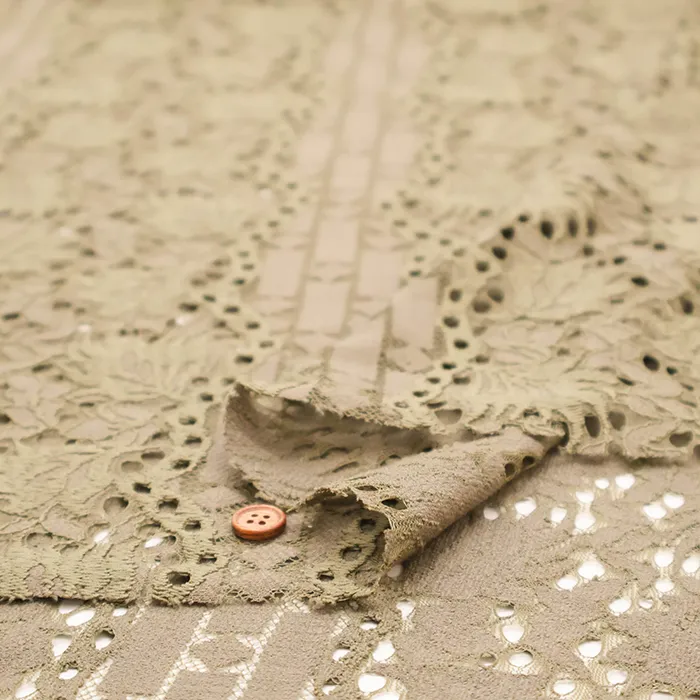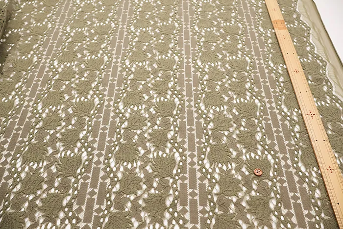 コードレースとは、布地やチュールレースなどの上に細い糸で刺繍したレースの事で、 レースの上からさらに模様を縫い重ねることで立体感のある風合いを出すことができます。