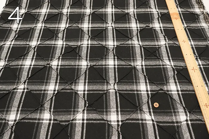 ピンタック生地は表面に陰影ができるため、表情の変化を楽しむことができ、シルエットを美しく見せる効果もあります。