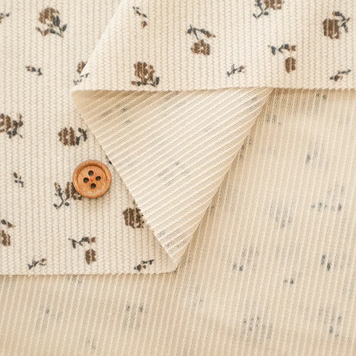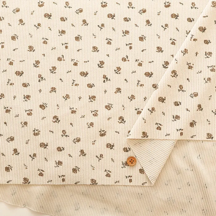 中国製 エステルコーデュロイプリント生地 フラワー