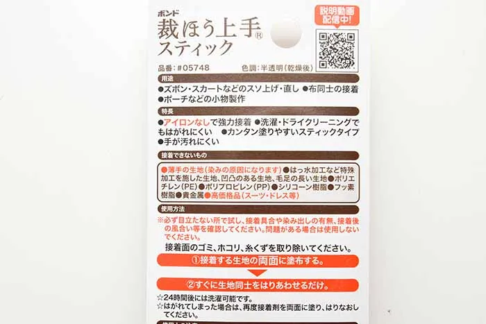 ズボン・スカートの裾上げなどの手直し、ほつれの修繕が簡単にでき、