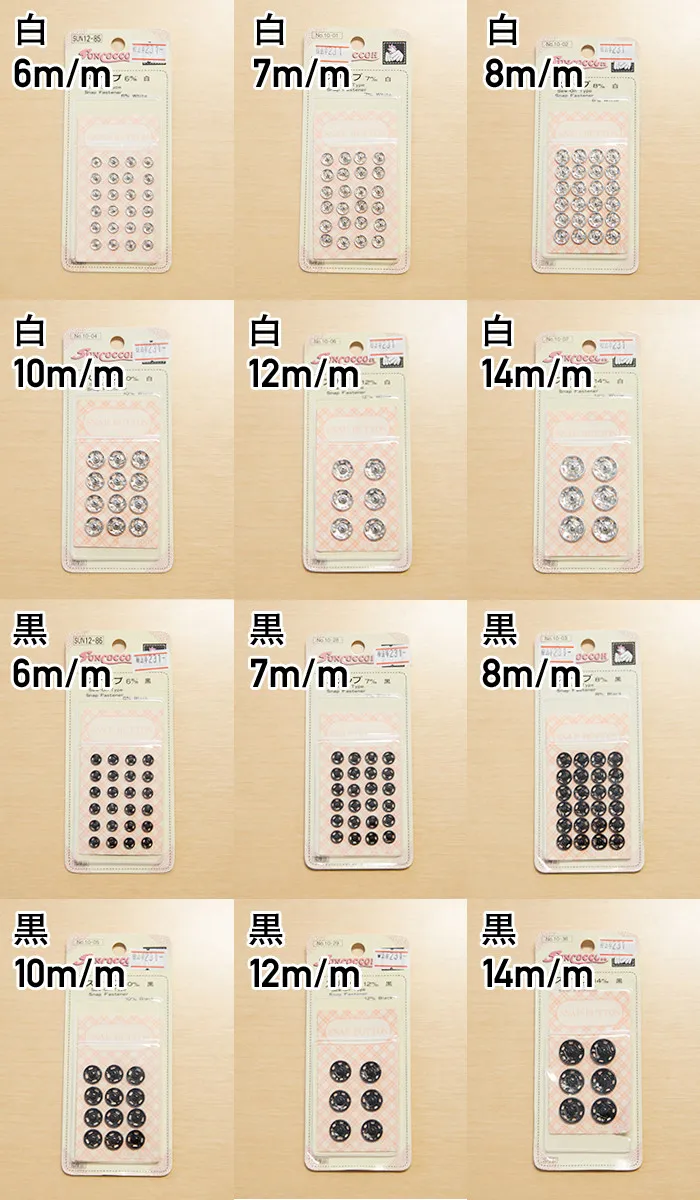 衣類や小物にと幅広く使えるスナップボタンです。