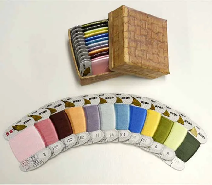 糸一筋120余年の歴史を誇る金亀印の絹糸の中でも、9号糸は職人さんから一般の方まで高い信頼を集め愛用されています。