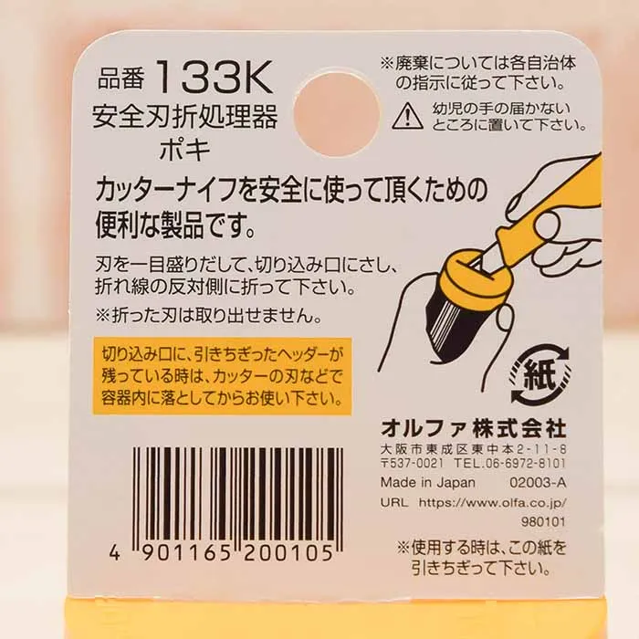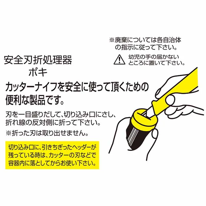 折る刃式カッターナイフの刃を確実に処理できるので安心。