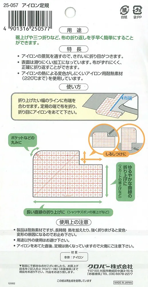 表面は滑りにくい加工になっており、布がずれにくく、正確に折り返すことができます。