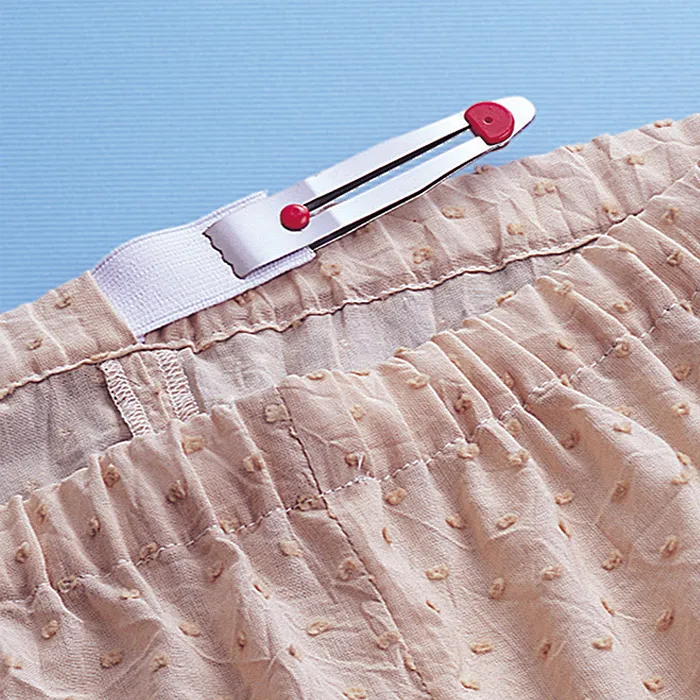 広い幅(15mm以上)のゴム(テープ)もしっかりはさんで途中でねじれにくく、スムーズに通せます。