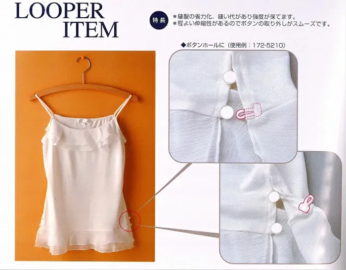 レディースのボタンホール、スカート裏地止め、スカート吊り用に使用される服飾資材です。