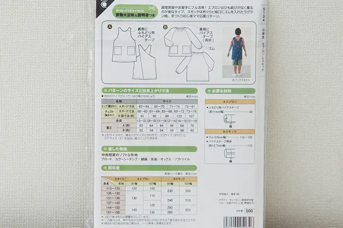 小学生 エプロンとスモック 型紙