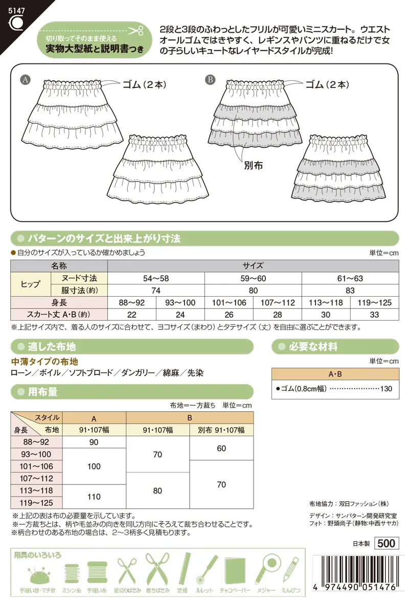 ウエストオールゴムで履きやすく、レギンスやパンツに重ねるだけで女の子らしいキュートなレイヤードスタイルが完成。