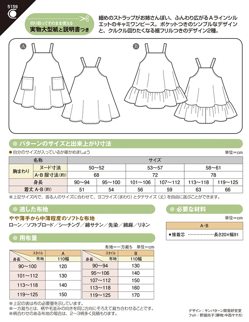 パターン 型紙 こどもフレアキャミワンピース